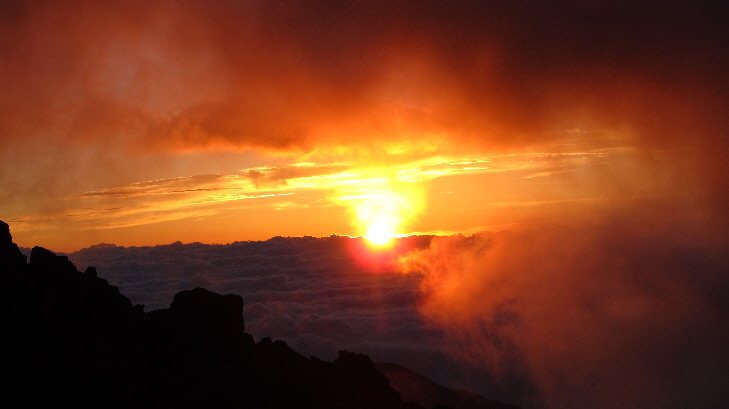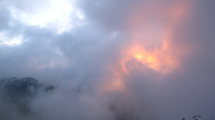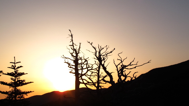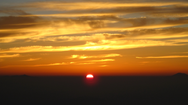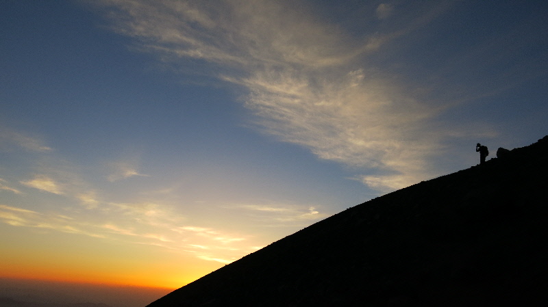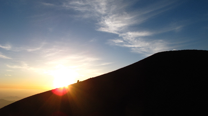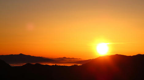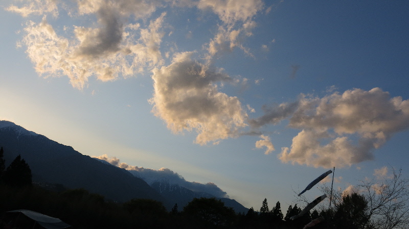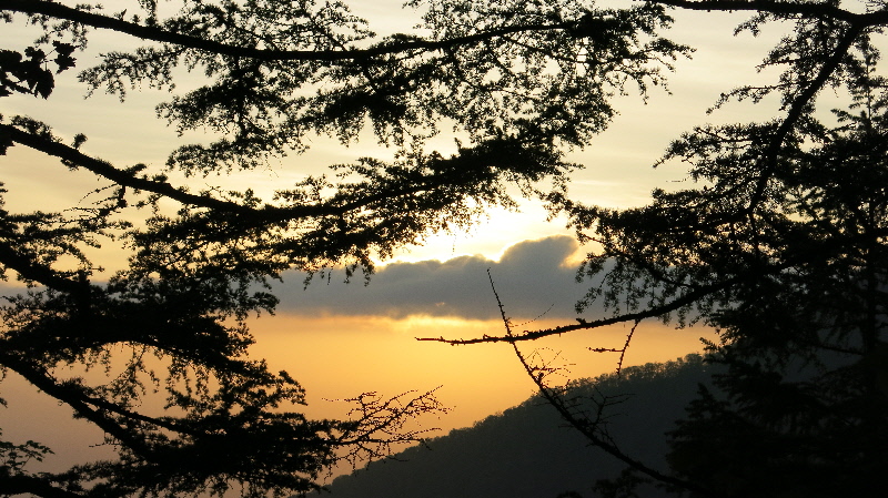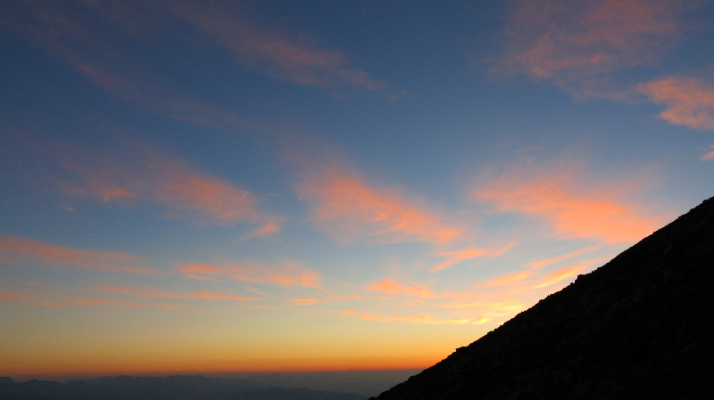 陽がヤマの向こうに落ちて行きます♪ 日中暑くても、陽が落ちるとグッと寒くなりそうです