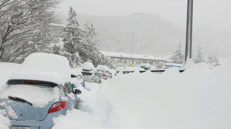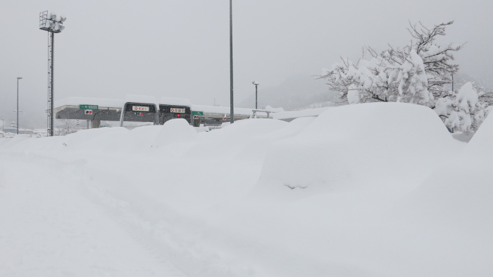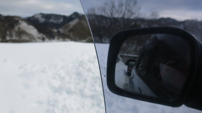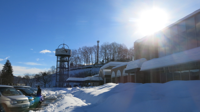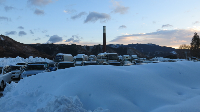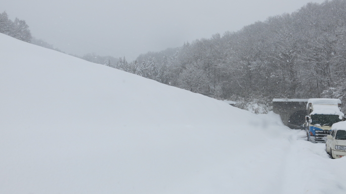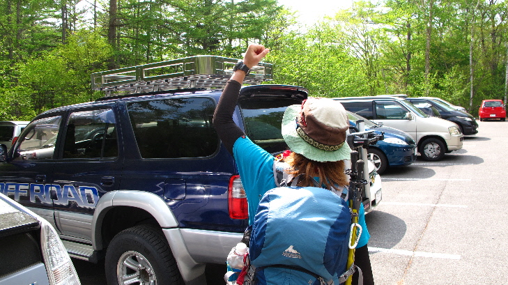 と、まだ遠くの駐車場に、うちの車しか見えないような・・・やっぱり今日は誰も登ってなかったのかな?