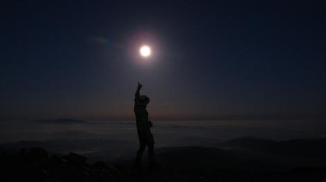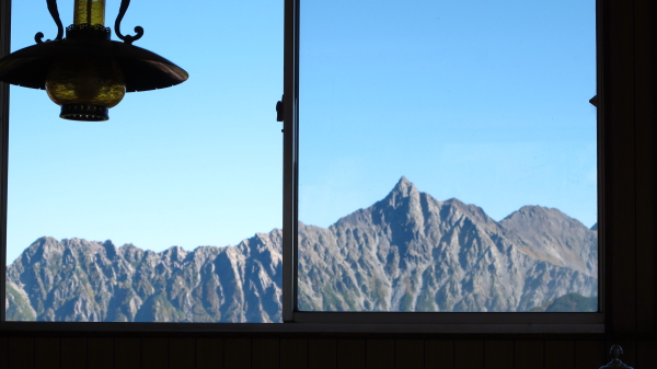 コーヒーとパンを食べながら~ありがとうのミニライトで中央アルプスのヤマを照らしてみます♪(笑)