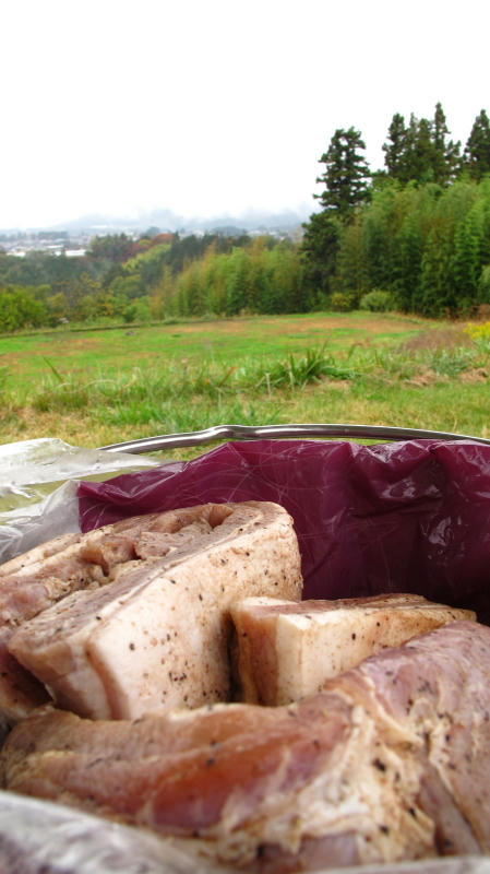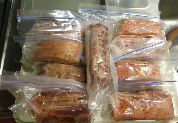 ・・と、1週間前にベーコンにする豚バラ肉をどっさり買い込んできて