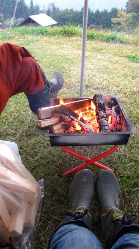 助かりました☆ スモークでモクモクしながら焚火でもモクモクと~♪