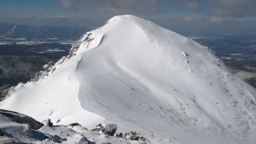 その雪たっぷりな雪山らしい雪山を、山頂から眺めたいということで