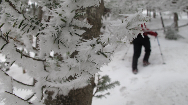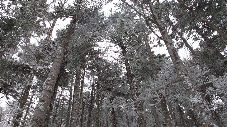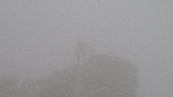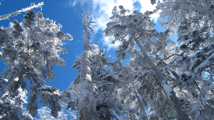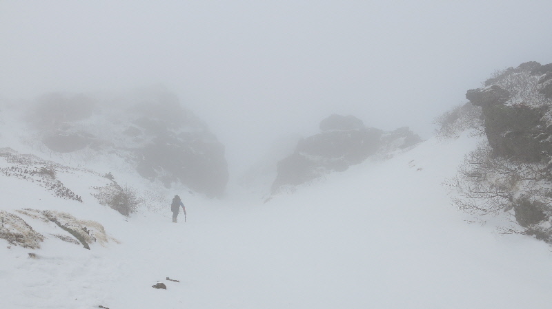 降雪後の東天狗岳、西天狗、登って行く中で、ガスの中から見せてくれた景色は