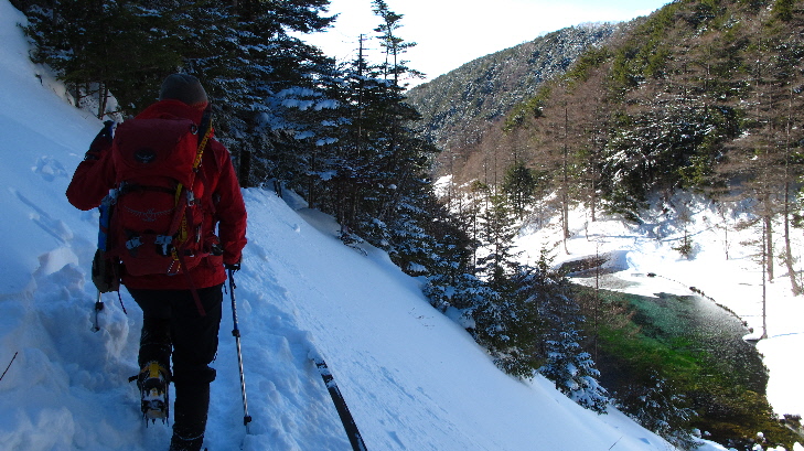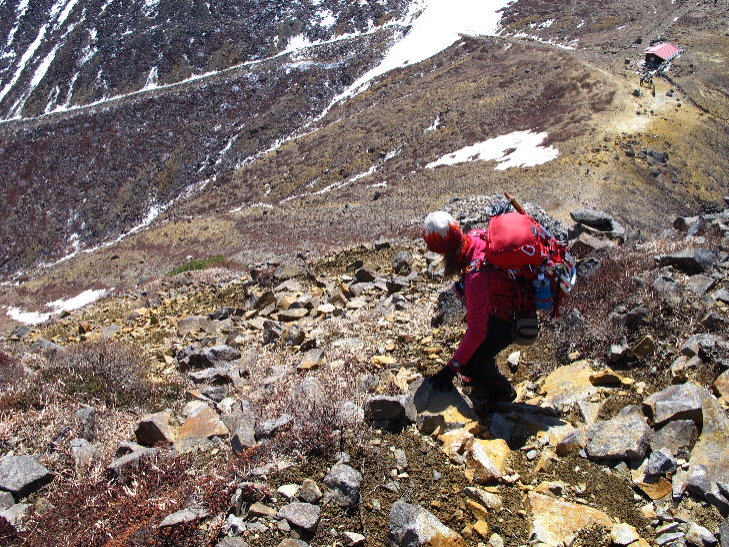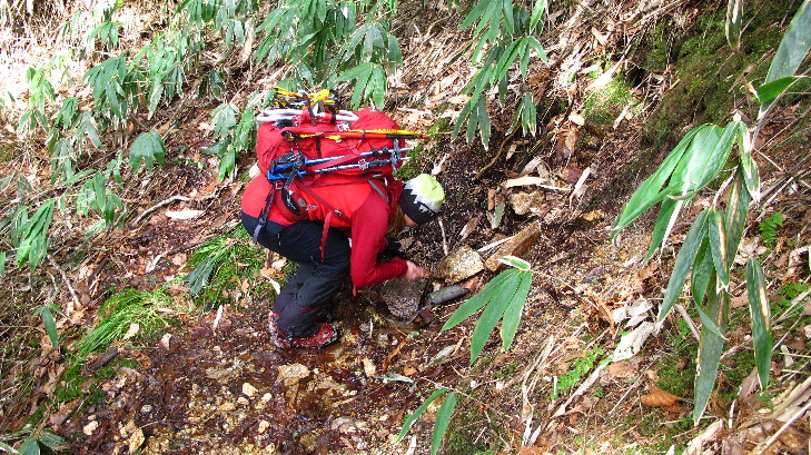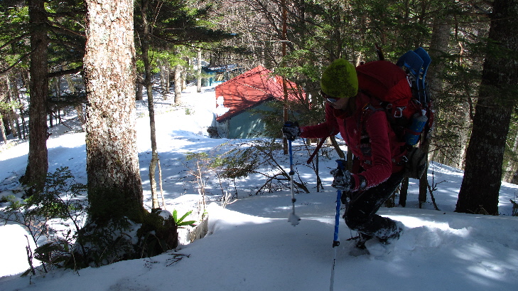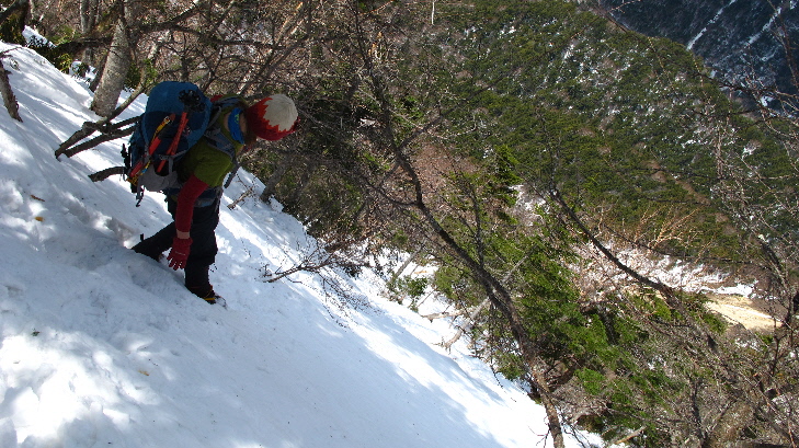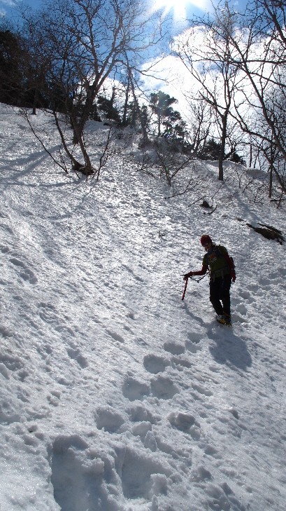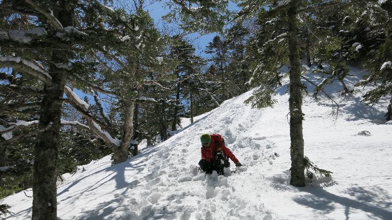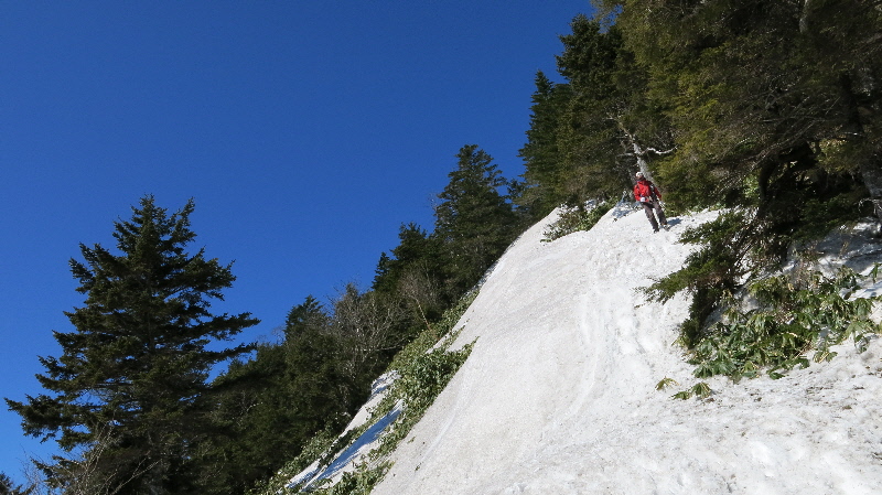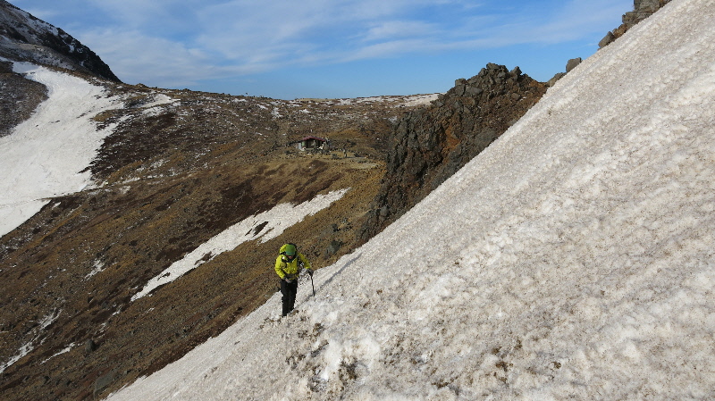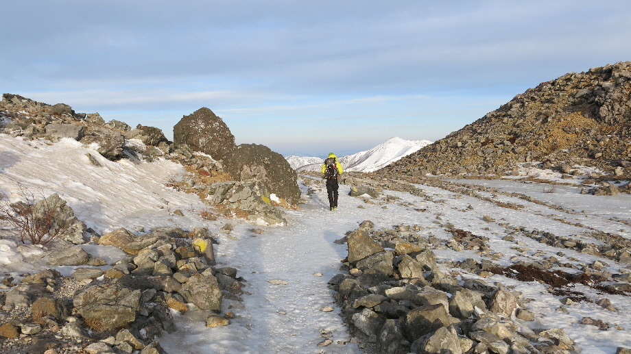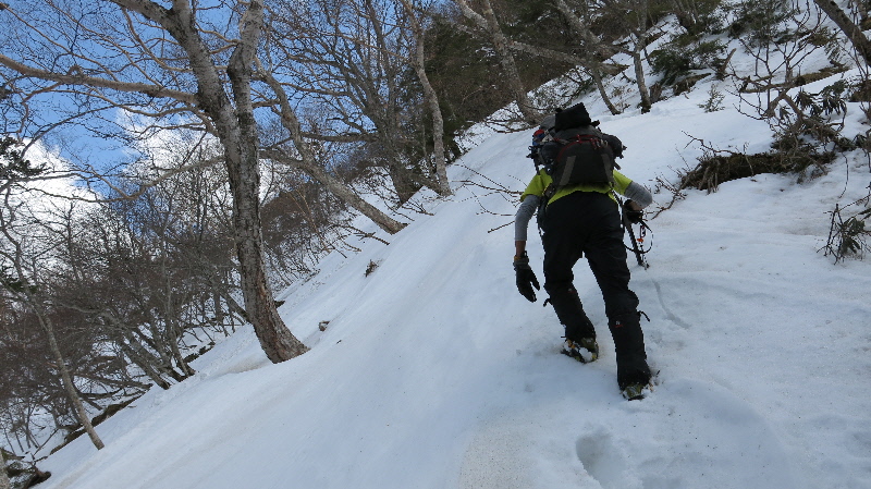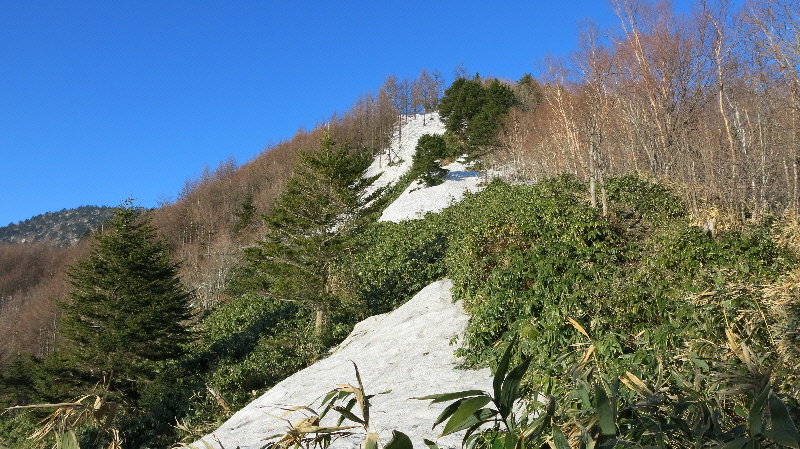 転んで緩んだアイゼンの紐を締め直したけど、ココでアイゼン外した方が楽だったかも?
