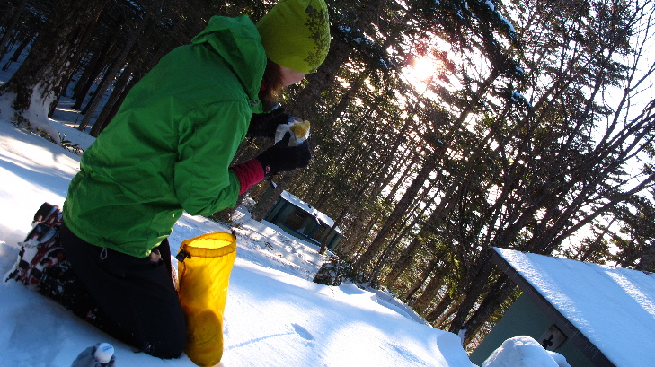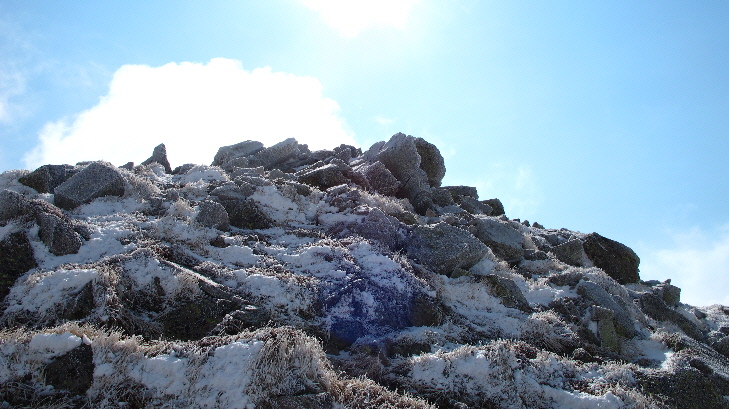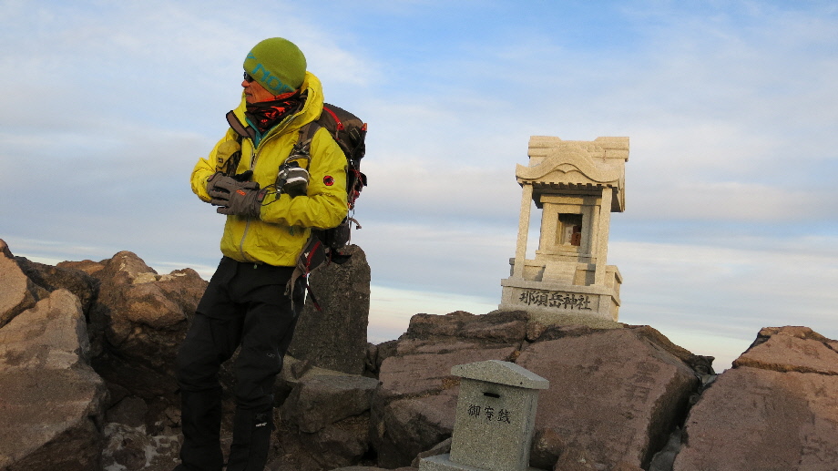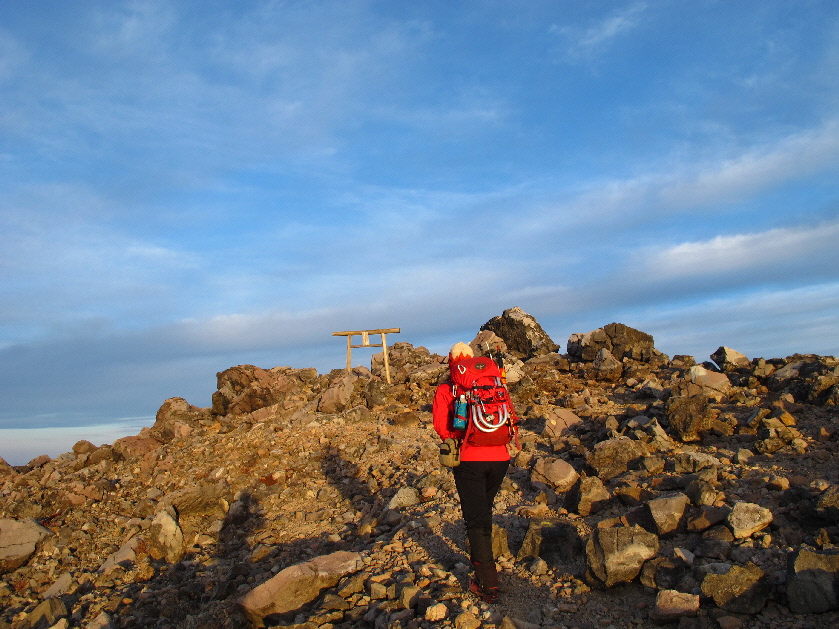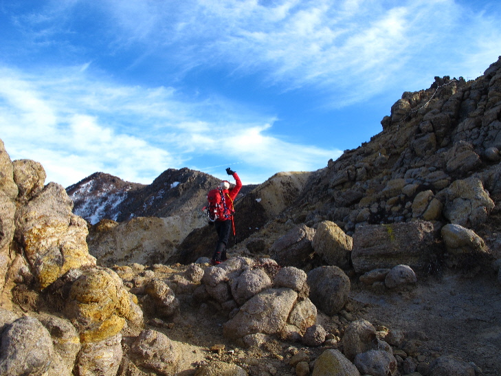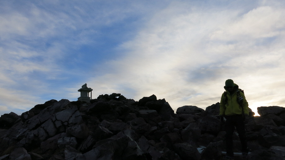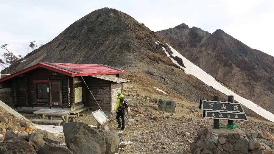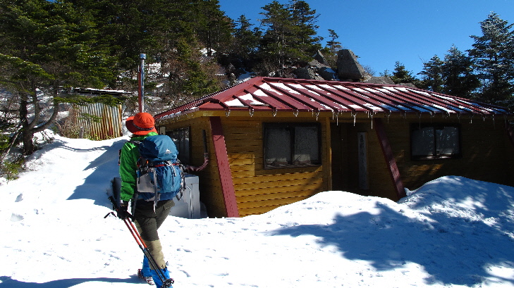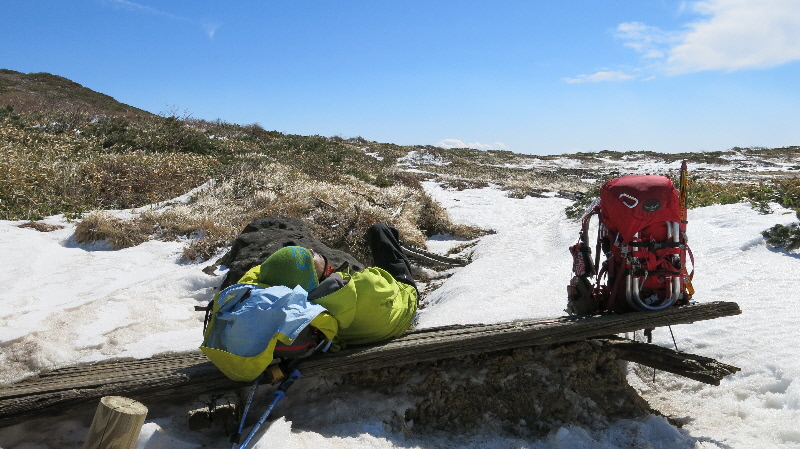また戻って来て避難小屋の上の岩でひとやすみ♪