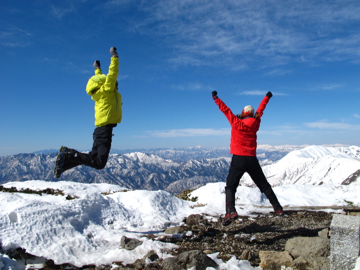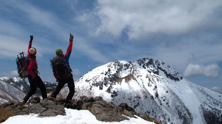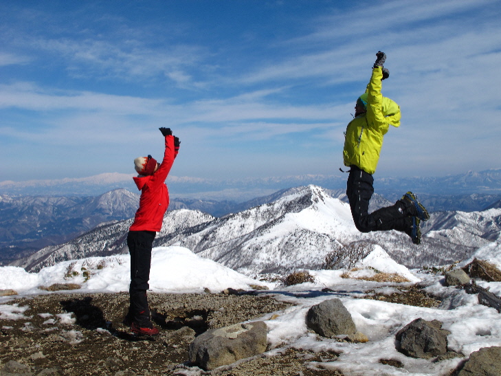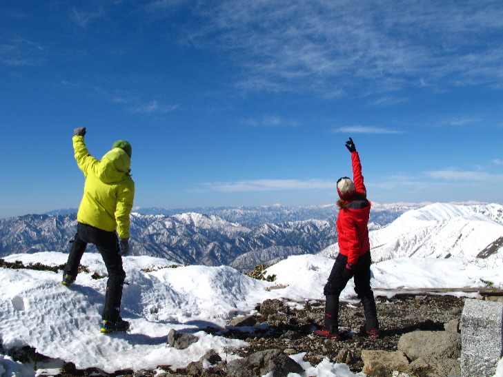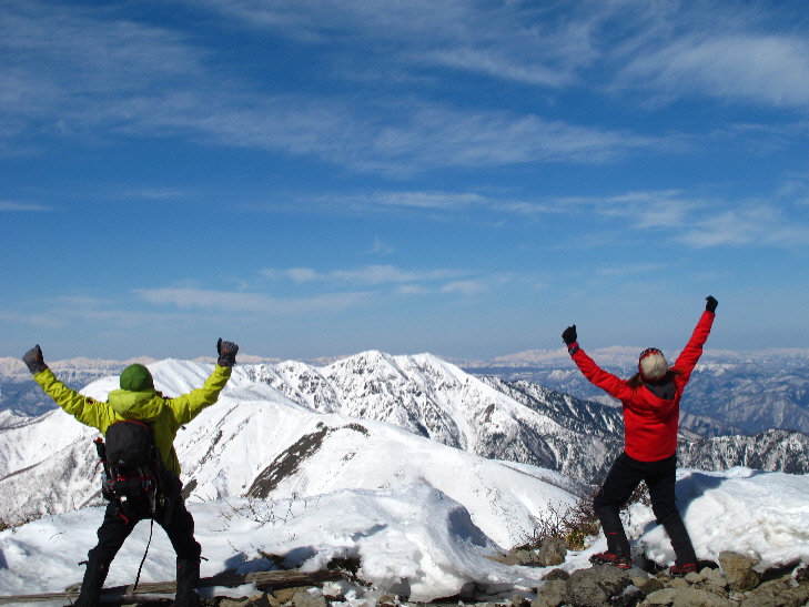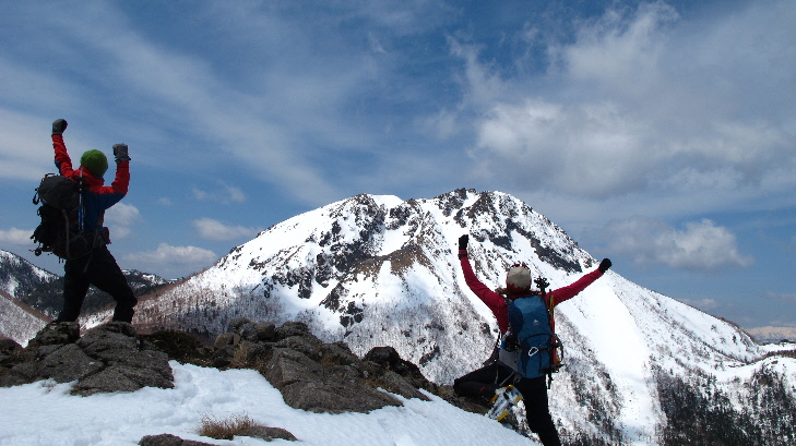 ヤッタネ☆西天狗に向かってふたりでガッツ♪ 今日は地元の男女お二人さんに撮ってもらいました(^_-)-☆