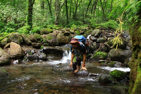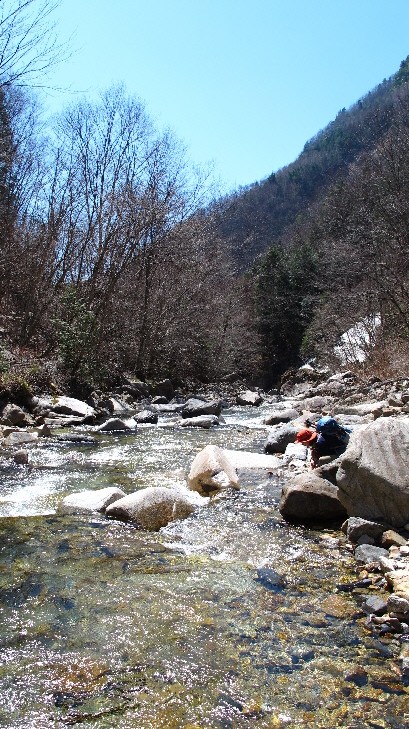 天然水を飲んで、顔を洗ってサッパリ(笑)