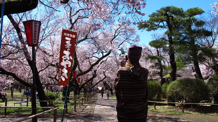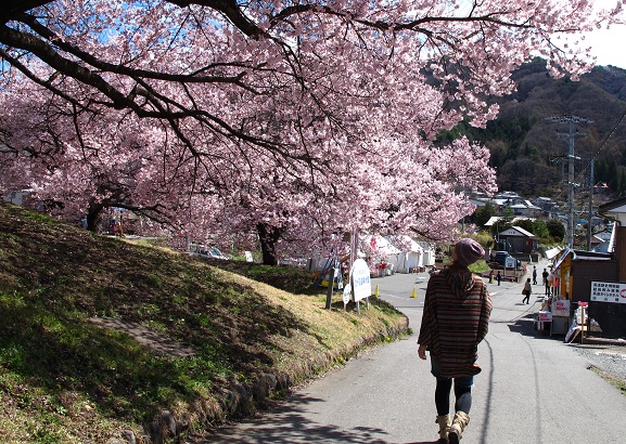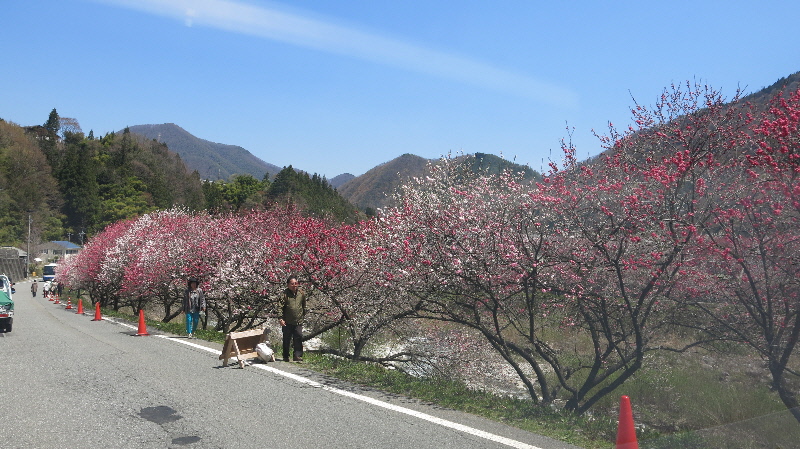 帰りに昼神温泉付近のキレイな花桃を見ながら帰ります♪ お祭りもやってて人もたくさんでした!