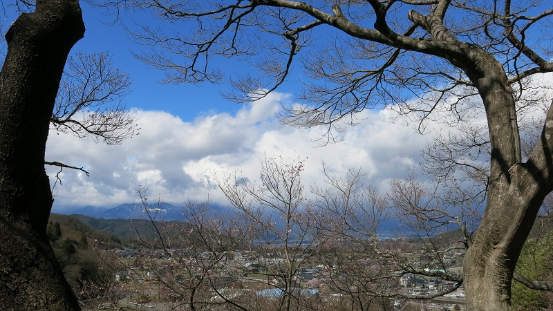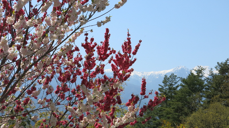 また途中から見えた中央アルプスと花桃がキレイで写真を撮ってしまいました♪