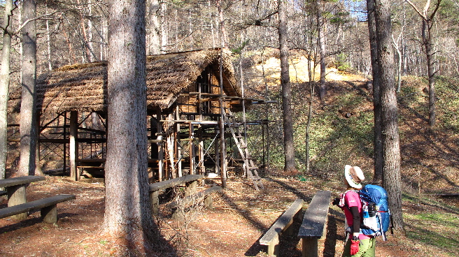 ココには木のテーブルとイスがあって、山頂よりもユックリ休めるかもデス♪