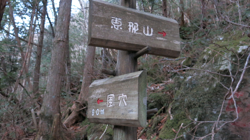 少し登るとこんな看板が! 帰りに行けたら風穴の方へ行ってみようかね♪